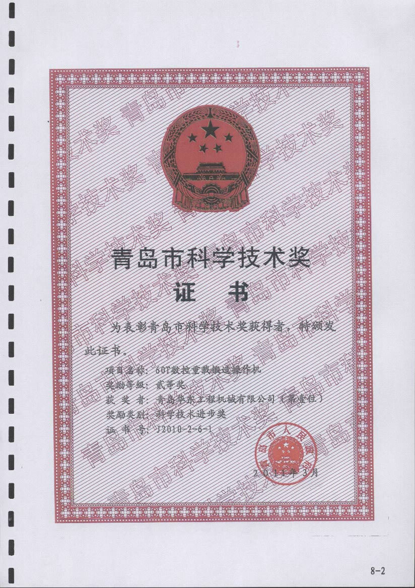 點(diǎn)擊查看大圖60T數控重載鍛造操作機青島市科技進(jìn)步二等獎證書(shū)