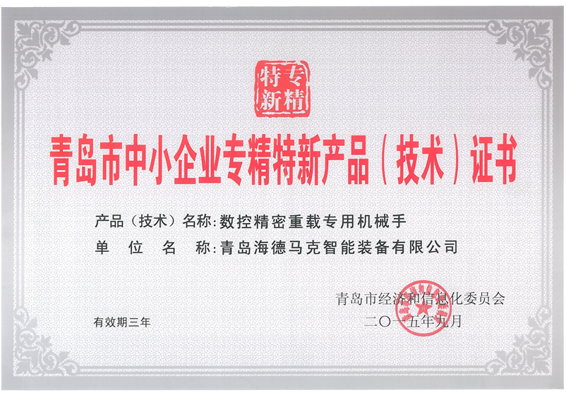 點(diǎn)擊查看大圖數控精密重載專(zhuān)用機械手被認定為專(zhuān)精特新產(chǎn)品